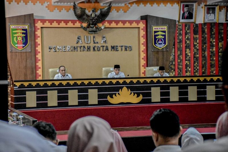 Pemerintah Kota Metro menggelar rapat bulanan yang diadakan di Aula Pemerintah Kota. Dimana Rapat yang dipimpin oleh Wali Kota dan Wakil Wali Kota Metro tersebut diikuti oleh seluruh Organisasi Perangkat Daerah (OPD) dan Instansi Vertikal, Kamis (04/07/2024).